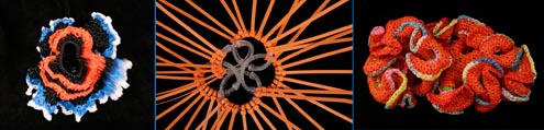 HYPERBOLIC synthesizes sculptural form and mathematical complexity by inserting contemporary manipulations into the traditional craft of crochet. The extraordinary product of that process is a representation of coral reef structures that are tantalizingly beautiful yet provocatively challenging in their commentary about oceanic health.